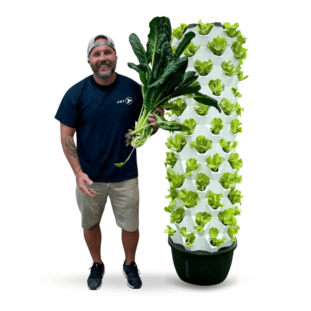 Each aeroponic tower grows 64 plants per square foot, producing 384 plants per site per month. With full participation: